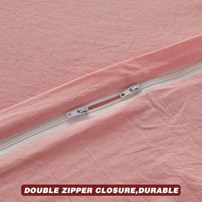 FACE TWO FACE Bedding Duvet Cover Set 3 Pieces 100% Washed Cotton Duvet Cover Linen Like Textured Breathable Durable Soft Comfy (King, Light Pink)