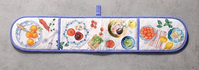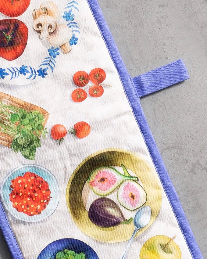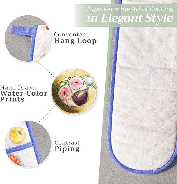 - Package includes: Includes 1 double oven mitt sized 7"x35". Perfect for handling hot cookware safely while adding a touch of European elegance to your kitchen. Designed in Europe and made in India with care