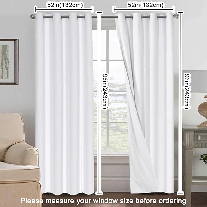 H.VERSAILTEX Pure White Curtains 96 inches Long, 100% Blackout Curtains for Bedroom Thermal Insulated Linen Textured Curtains Living Room Grapes 2 Panel Sets, 52W x 96L - Inch
