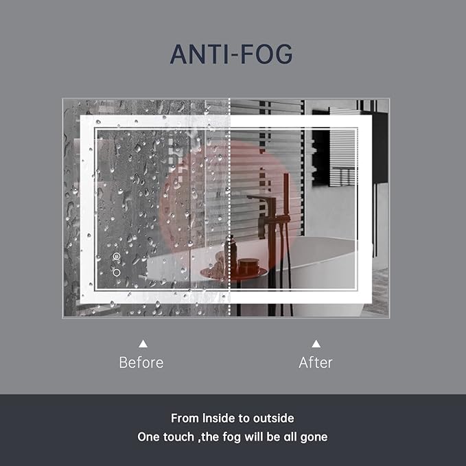 LED Bathroom Mirror,48"X32" Lighted Mirror for Bathroom Wall,Lighted Bathroom Vanity Mirror,LED Mirror Anti-Fog Dimmable Adjustable Lighted Bathroom Mirror