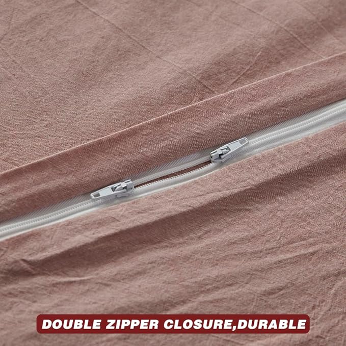 Face Two Face Bedding Duvet Cover Set 3 Pieces 100% Washed Cotton Duvet Cover Linen Like Textured Breathable Durable Soft Comfy (California King, Old Pink)