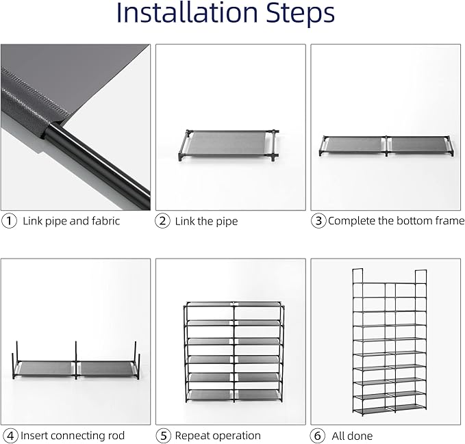 - 【High-quality Shoe Rack】The shoe storage is made of sturdy steel pipes, reinforced PP connectors and durable waterproof non-woven fabric layers. The shoe rack organizer has the characteristics of firmness, stability, adjustability and long service life.