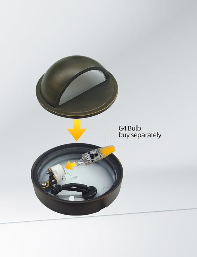 - Unique Design: The circular lamp holder's low height lets it hide in the grass or shrubs. The frosted lens eliminates glare letting you enjoy bright light. This brass deck light fixture not include bulb,you need to buy G4 bulb separately.