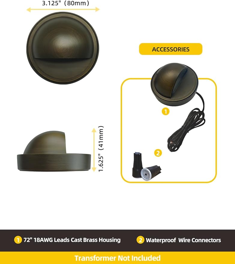 - Professional Grade: This bronze finish deck light includes a 6-foot 18 AWG lead wire, and we also include two wire connectors in the package, so you can easily connect it to your existing landscape lighting system.