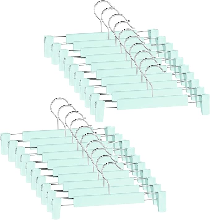 20 Pack Pants Hangers with Adjustable Non-Slip Clips Anti-Rust Hanging Hook for Trouser,Skirts,Jeans,Clothes Hangers Green