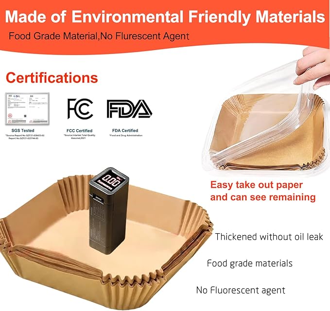 - 【Easy to Use】These non-stick air fryer disposable paper liner are designed with a square bowl shape, which do not need to tear, fold, cut, nor bend, and you can directly put it in when you are ready to cook. The paper liners can be applied for baking, roasting, frying, or serving food, suitable for home baking, camping, BBQ, summer party, and so on, lightweight and practical.