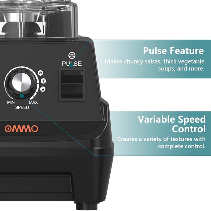 - 🍨🍨Variable Speed and Pulse Function: The OMMO Blender allows you to adjust the speed and pulse as you blend, giving you complete control over the texture of your drinks. You can create anything from silky smoothies to chunky salsa