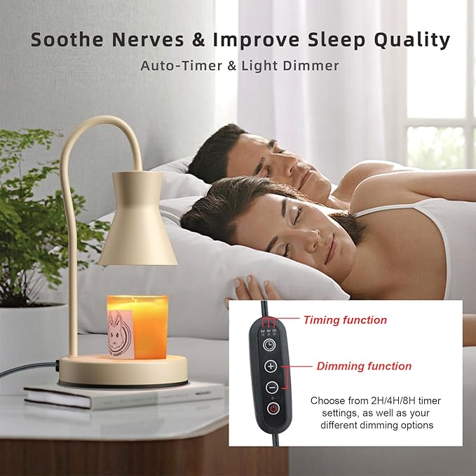 Candle Warmer Lamp with Timer and Dimmer, Vintage Electric Candle Melter with 2 Bulbs, Melter Scented Candle Height Adjustable Compatible with Jar Candles, House Warming Gifts (Beige)