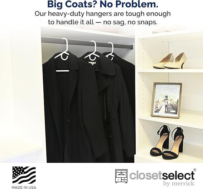 - PREVENT WRINKLES – Our Heavy Weight Hangers are designed to be strong, and sturdy enough to hold your heavy sweaters, jackets, coats, suits, dresses and more.