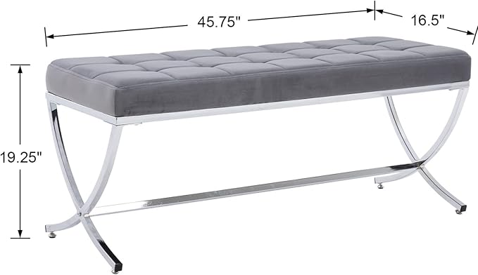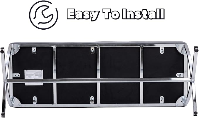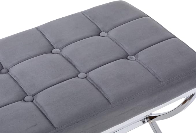 - 【Sturdy and Durable】The end of bed bench features X-shaped chrome legs for a uniquely modern look. Steel frame construction provides excellent stability and durability.