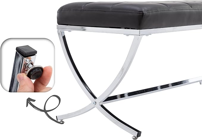 - 【Sturdy and Durable】The end of bed bench features X-shaped chrome legs for a uniquely modern look. Steel frame construction provides excellent stability and durability.