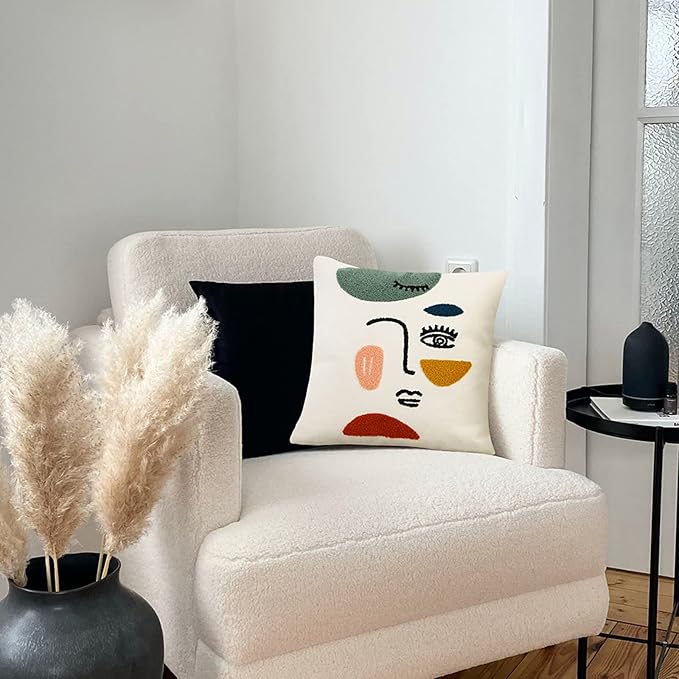 Merrycolor Soft Aesthetic Decorative Throw Pillow Covers 18x18 Modern Abstract Face Art Pillow Covers Colorful Embroidery Square Cushion Case Boho Cute Pillows for Bedroom Couch Sofa Living Room,1PC