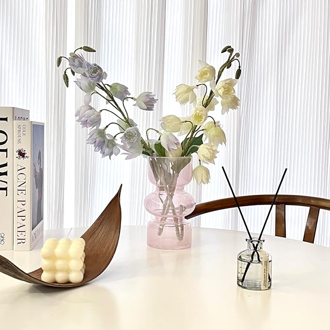 - 【Unique Design】- This nordic style pink translucent cylinder bubble glass vase is very eye-catching. It combines the elements of waves and bubbles. It adopts a three layer circular stacking design, which breaks the dull feeling and brings a fresh space visual effect. It can be the visual center of your home / office and any other occasions, so you will get lots of compliments on it.