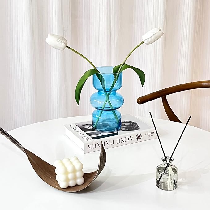 - 【Occassion】- This elegant blue hydroponic glass vase is an ideal décor and flower container for home/wedding/party/office. Can be used as a decorative glass vase in fireplace area/hallway/windowsill/shelf/bedroom/kitchen. It is a good choice to use alone or to use in sets with multiple colors. Create a space aesthetic and pleasant living environment.