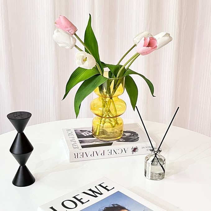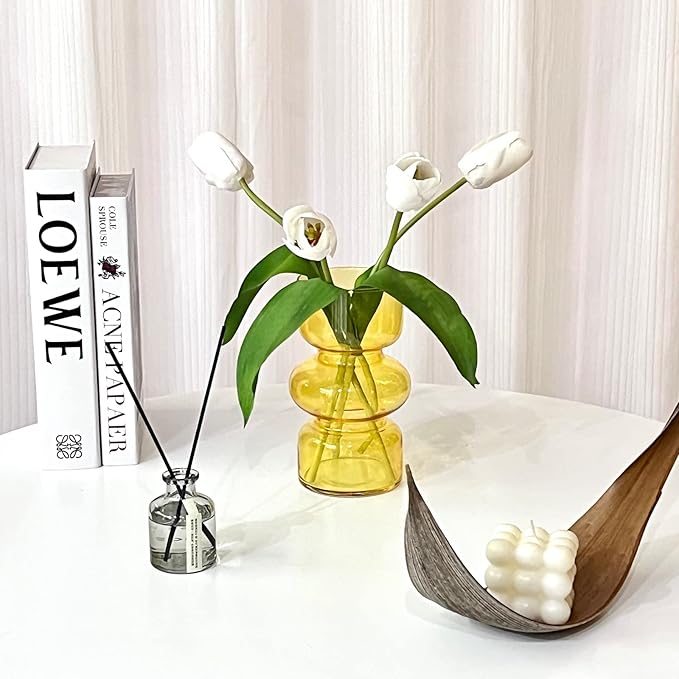 - 【Unique Design】- This nordic style orange clear cylinder bubble glass vase is very eye-catching. It combines the elements of waves and bubbles. It adopts a three layer circular stacking design, which breaks the dull feeling and brings a fresh space visual effect. It can be the visual center of your home / office and any other occasions, so you will get lots of compliments on it.