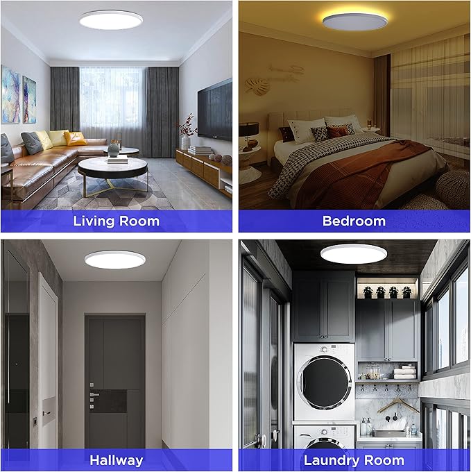 - COLOR TEMPERATURE AND BRIGHTNESS ADJUSTABLE: Only dim with our remote control, can't fit home dimmer; This led ceiling light with a remote can be continuously adjusted brightness from 10% to 100% and change color temperature from 3000 K warm light to 6500 K daylight by remote control; (DO NOT WORK WITH DIMMER SWITCH)