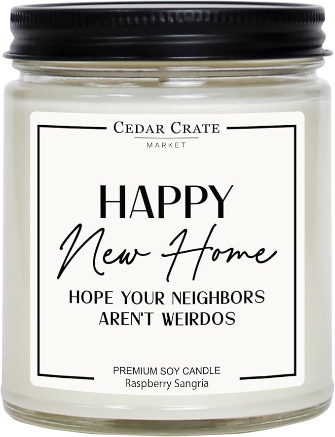 Cedar Crate Market House Warming Gifts New Home – Funny New Homeowner Candle for Women & Men, First Apartment Essentials, Closing Gift for Home Buyers – Raspberry Sangria Soy Candle, Made in USA