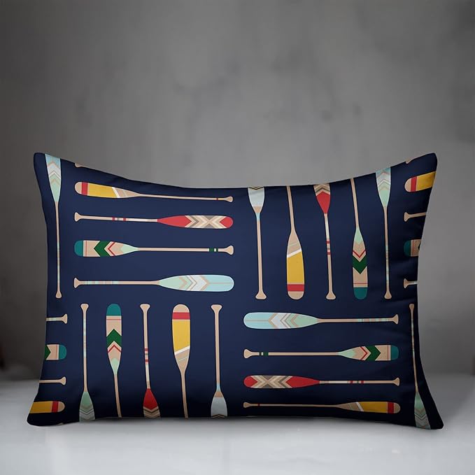 Oar Pattern Indoor/Outdoor Pillow | Decorative Pillows for Living Room Couch Bed Sofa Patio, Fluffy Soft Cushion | Water Resistant Blue, 14x20