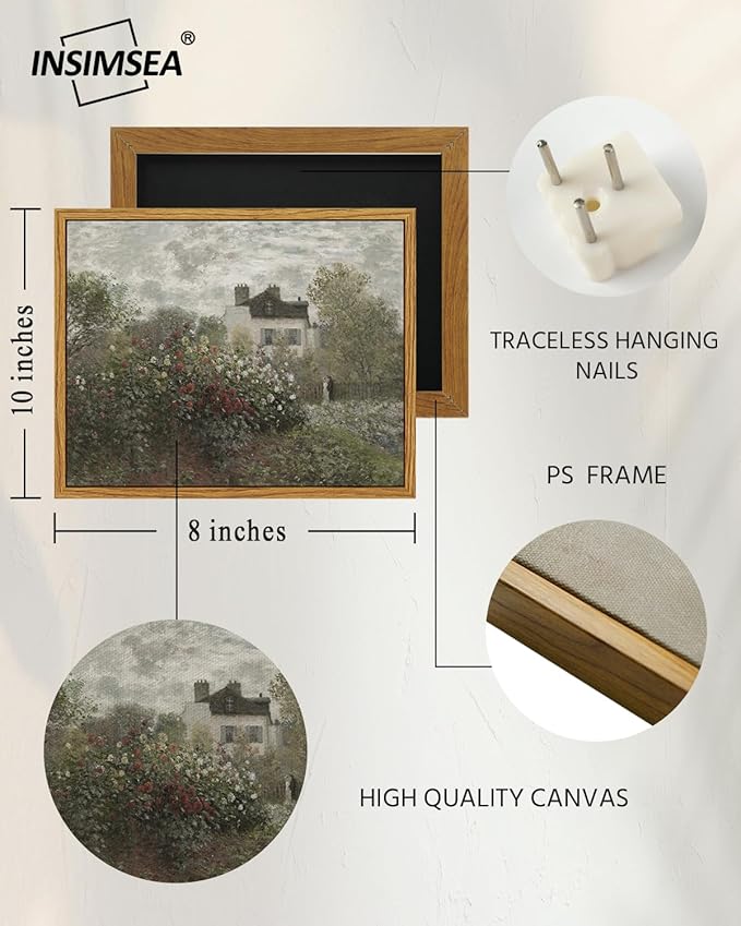 InSimSea Framed Canvas Wall Art Vintage Decor, Monet Flower Garden Painting Prints, Vintage Room Decor, Wall Decor Living Room Bedroom Kitchen Office Room Decor, 8"x10"