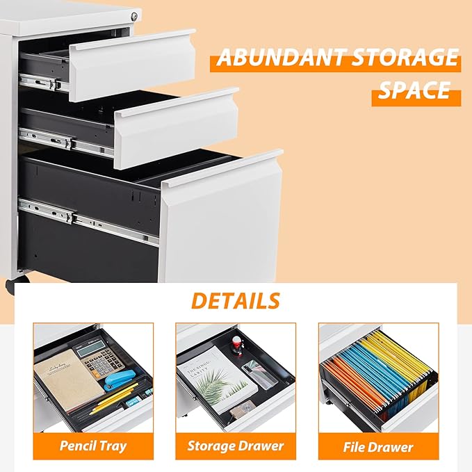 - 【Premium Material】This 3 drawer filing cabinet is made of cold rolled steel, durable and has a load capacity of up to 330 lbs.