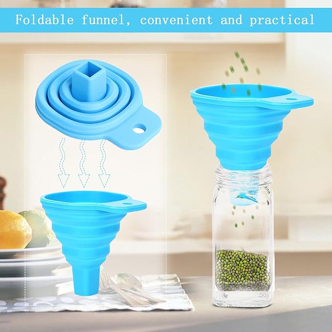 - [20 glass jars]-The spice rack contains 20 glass jars, and is equipped with a folding funnel and a label, which can be easily identified and stored for daily spices and various spices.