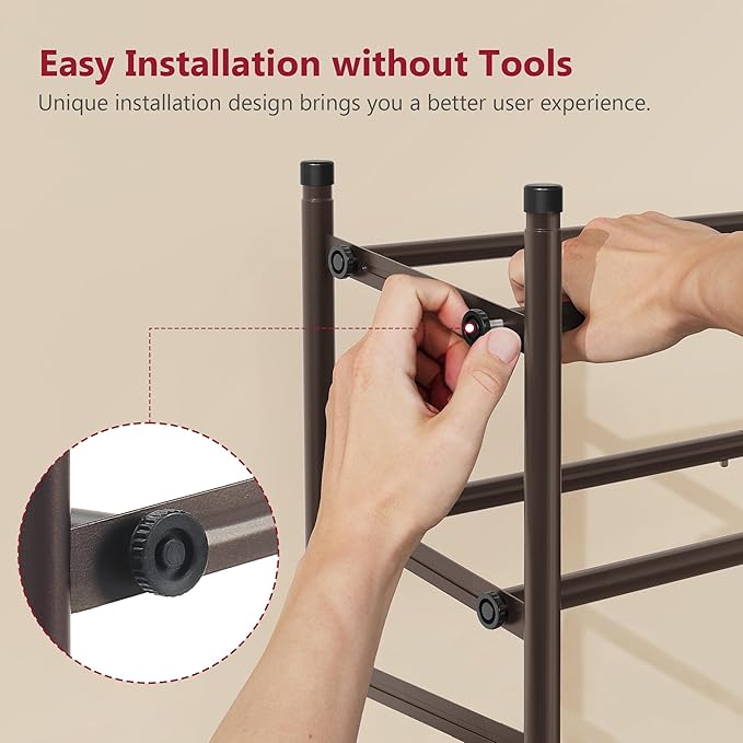 Tajsoon 3 Tier Expandable Shoe Rack for Closet, 28“-41“Adjustable & Stackable Shoe Shelf Storage, Metal Shoe Rack Organizer for Front Door Entrance, Closet, Garage, Entryway, Bronze