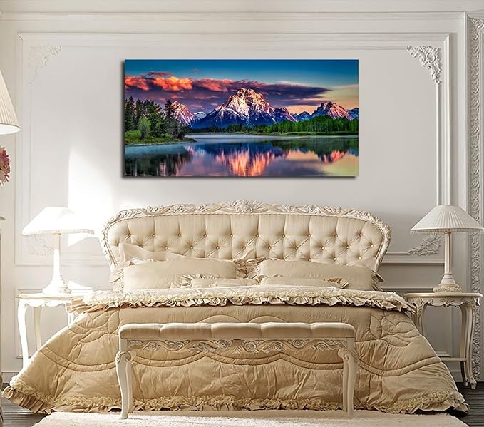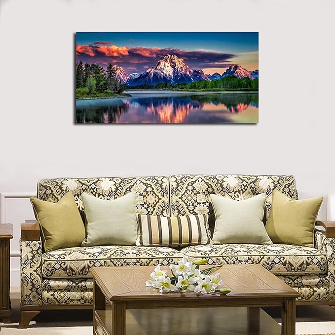 Sunset Landscape Canvas Wall Art for Living Room Grand Teton Wyoming National Park Picture Wall Decor Snake River Mountain Forest Nautre Prints Artwork Bedroom Bathroom Office Home Decor 24" X 48"