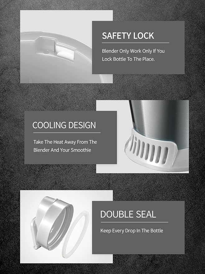 Personal Blender, Electric Shake Bottle with 2 x 20oz Travel Bottle and Coffee/Spices Jar, Portable Shaker Cups for Protein Shakes, 500W Single Serve Blender for Shakes and Smoothies, Sports(Grey)