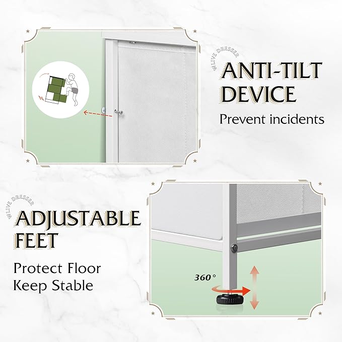 - 【✨ Stable Structure Safety Assured】Our storage drawers units is designed with 15mm thickened metal steel frame with cross support rods for durability. The storage organizer equipped with anti-tilt device, which can easily fix the cabinet to the wall, ensuring the safety of you, your family and pets, and enjoying a convenient life!