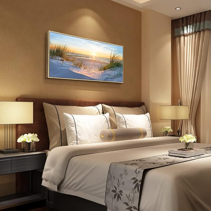 - 【FRAMED CANVAS WALL ART SIZE】Size Is :20x40inch (50x100cm)(Including The Outer Frame), Sea Beach Framed Wall Decor Art Ocean Canvas Pictures Natural Wood Framed wall art。