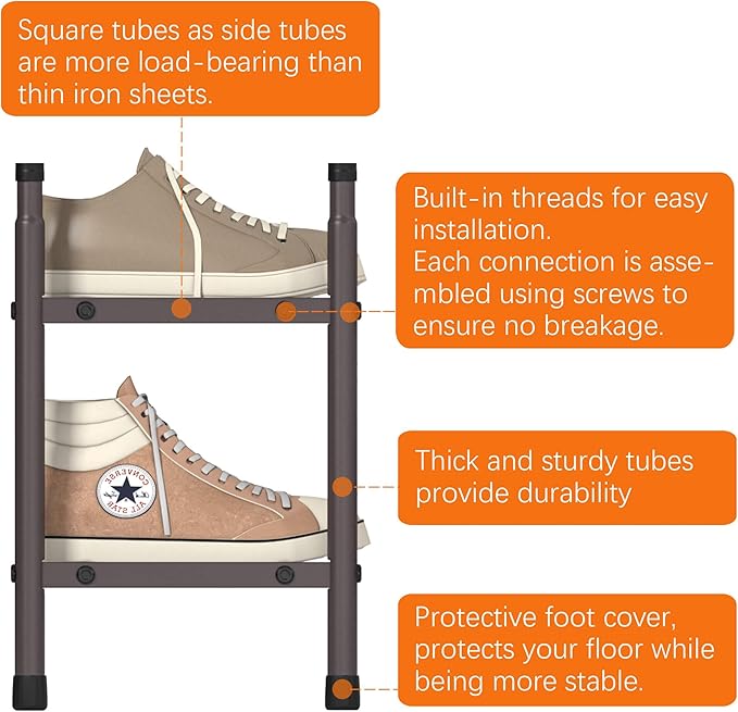 - STURDY METAL SHOE SHELF: Constructed from premium metal frame, metal tube, screw and strong plastic cover/pad for remarkable reliability and durability to meet your long-term shoe storage demand
