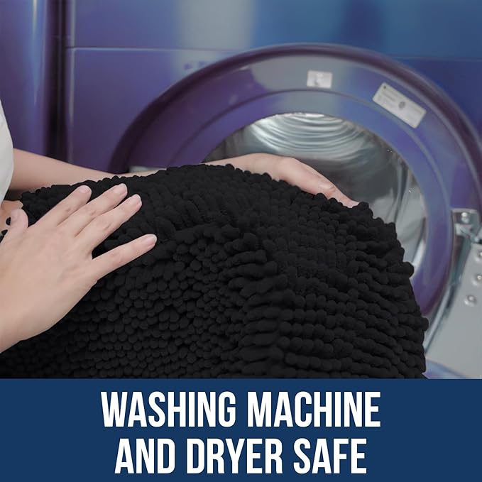 Muddy Mat Chenille Bathroom Rugs Quick Dry Microfiber Mats Non Slip Washable, Extra Thick, Soft and Highly Absorbent Bath Mats for Bathroom, Kitchen, and Shower Floor - Black Large 35"X24"