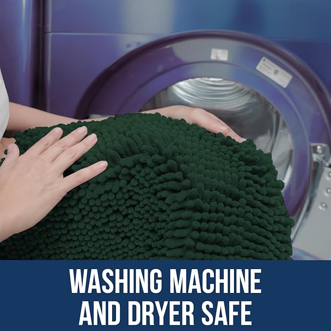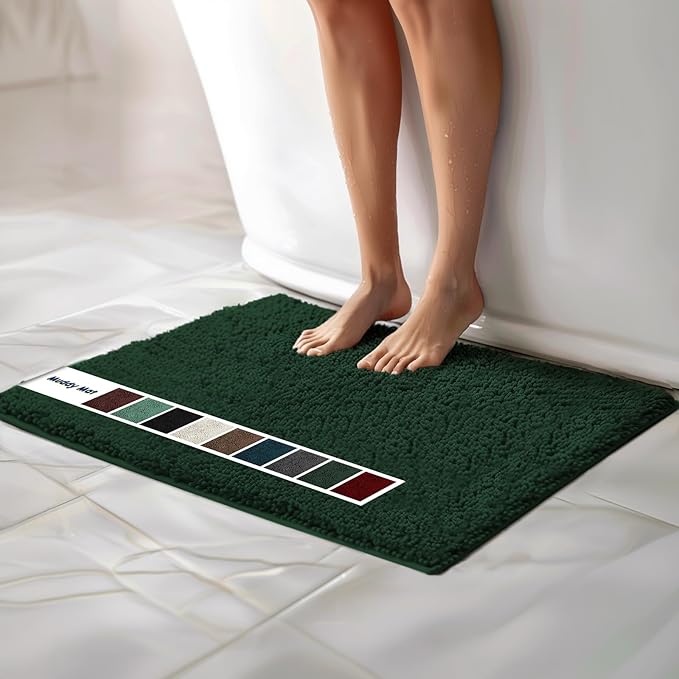 Muddy Mat Chenille Bathroom Rugs Quick Dry Microfiber Mats Non Slip Washable, Extra Thick, Soft and Highly Absorbent Bath Mats for Bathroom, Kitchen, and Shower Floor - Dark Green Large 35"X24"