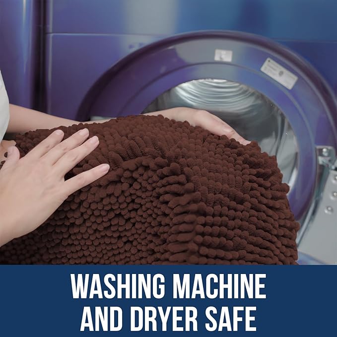 Muddy Mat Chenille Bathroom Rugs Quick Dry Microfiber Mats Non Slip Washable, Extra Thick, Soft and Highly Absorbent Bath Mats for Bathroom, Kitchen, and Shower Floor - Brown Large 35"X24"