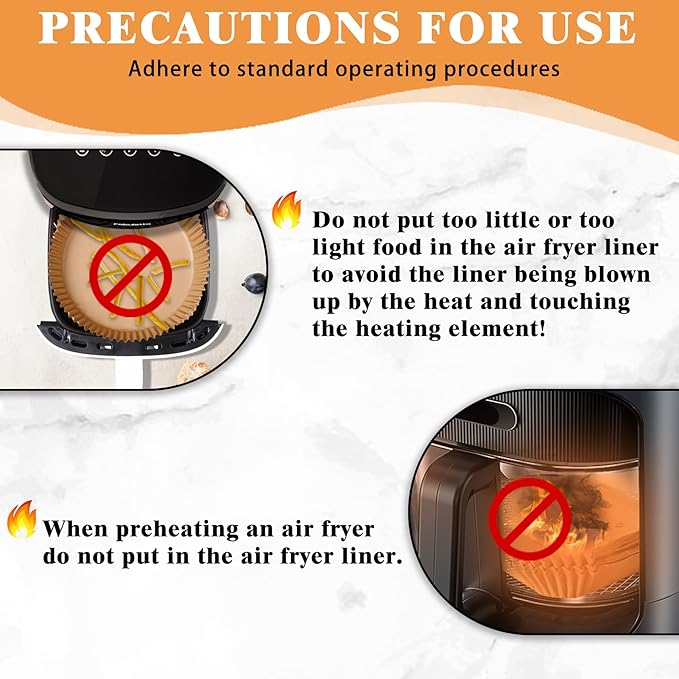 - šćWide UsagećAir fryer liners are suitable for baking, frying, baking, steaming, frying, microwaving or holding food. You can use it to heat pizza, cook fish, chicken, vegetables or other foods. Great for camping, home baking, parties.