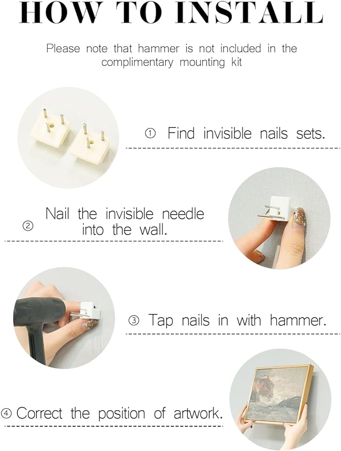 - Ready To Hang : This framed canvas art wall decor measures 8x10 inches, comes with 2 hooks which makes it easy to hang. Please read the installation instruction image before nailing the hook on your wall. (This item is handmade, so please allow the size error to be about 0.2 inches)
