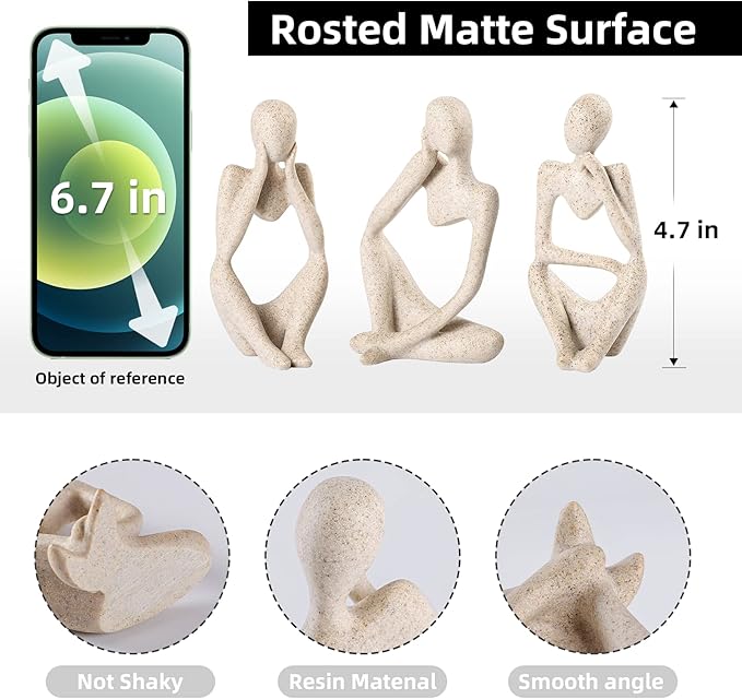- 【SIZE】The dimensions of the unique Thinker abstract sculpture are 4.7" H x 3" W. Sculpture decor the size is just right, Just place it where you like, such as a bookshelf, Mantelpiece, TV cabinet, table, desk, coffee bar, entertainment center etc.