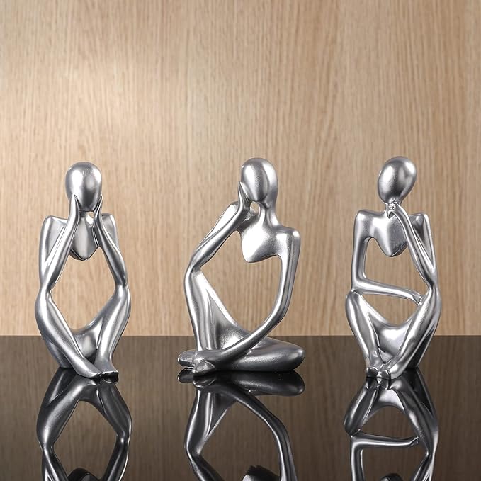 Thinker Statue Gold Decor Abstract Art Sculpture, Golden Resin Collectible Figurines for Home Living Room Office Shelf Decoration,Great Gifts Ideas (Silver)
