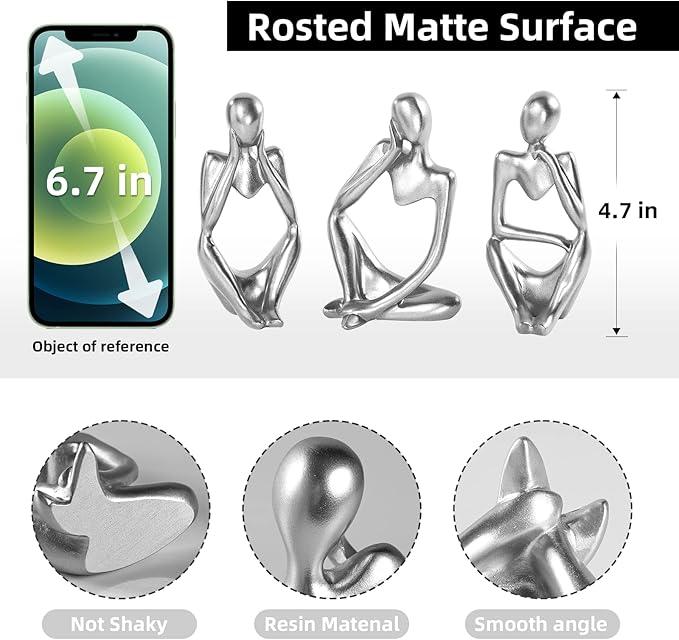 - 【SIZE】The dimensions of the unique Thinker abstract sculpture are 4.7" H x 3" W. Sculpture decor the size is just right, Just place it where you like, such as a bookshelf, Mantelpiece, TV cabinet, table, desk, coffee bar, entertainment center etc.