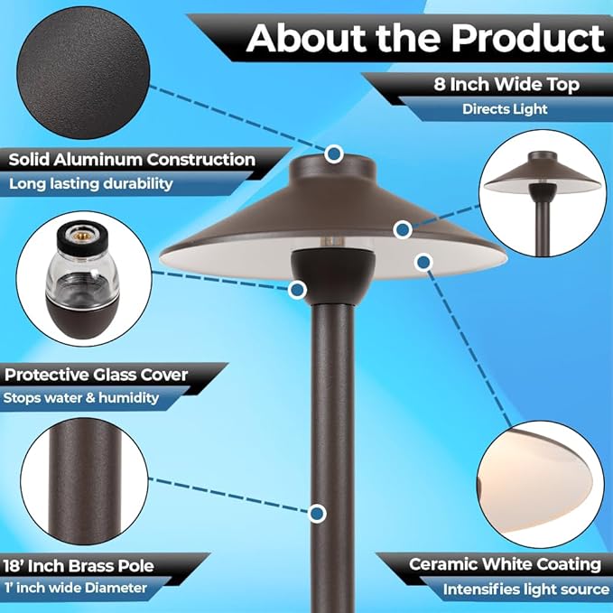 - {Easy to Install} Our one pack landscaping lights are the exterior garden light you'll install once and enjoy for years to come. Pathway and driveway lights operate with safe energy efficient 12 volt working power compatible with most outdoor low voltage landscape lighting kits and systems. Each light provides wide illumination that casts light 6-8ft all around. Low voltage lights installation requires a low voltage transformer and low voltage wire/landscape lighting wire (Sold Separately)