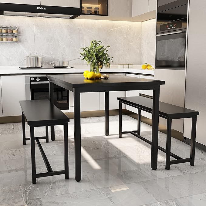 - Multi-FunCtional Use:This dining table with benches of perfect size and height for seating ergonomically designed to enjoy time with families or friends; Not only a kitchen table set also can be used as a computer desk, writing desk, office desk, coffee bar, etc; Suitable for your kitchen, living room, basement, home, bar, or office.