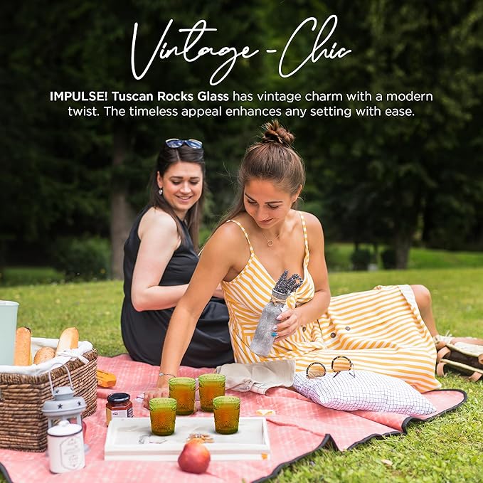 - Vintage-Chic Glassware: IMPULSE! Tuscan Rocks 8 oz. Glass exudes vintage charm with a modern twist, ideal for serving whiskey, cocktails, and beer with panache. Elevate your drink presentation with these stylish Olive glasses.