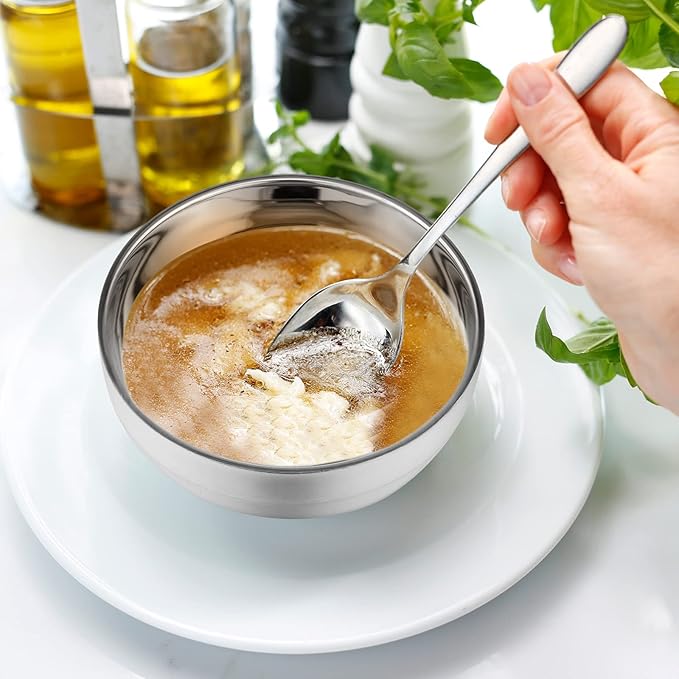 - Compact and Stackable Stainless Bowl: Each bowl measures 5.1 x 2.6 inches, portable and space-saving; The stainless steel bowls for kids and adults can be stacked neatly when not in use, keeping your kitchen organized and tidy