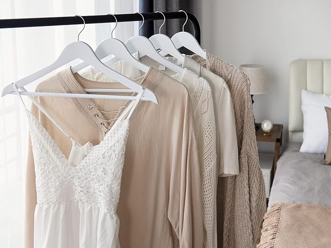 - Contoured Shoulders Design: These white wooden coat hangers feature contoured shoulders and a sleek appearance. They can keep your clothes free of wrinkles and in good shape while adding to your space.