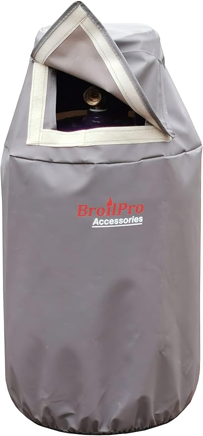 - Easily protect your propane tank with this BroilPro Accessories propane tank cover, which is constructed with strong heavy duty 300D Polyester. The cover fits most standard 30-lb. propane tanks, so you can be assured of a quality fit.
