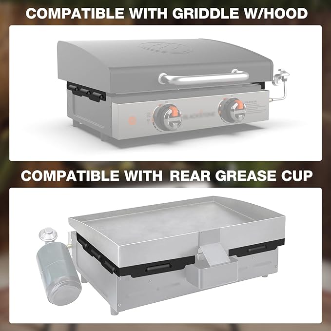 - PERFECT MATCH FOR YOUR GRIDDLE —These wind guards cover the gaps between the Blackstone griddle top and the burners, compatible with rear grease cup, side shelf, hood and cover. And you are able to leave them attached on the Blackstone grill during travel.