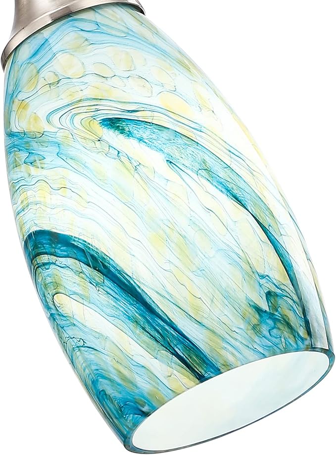 - Unique Art Glass Patterns:This mini glass pendant light fixture is Hand-blown unique abstract blue pattern Art glass, due to its hand-made nature, each piece of blown glass will vary in color and pattern.