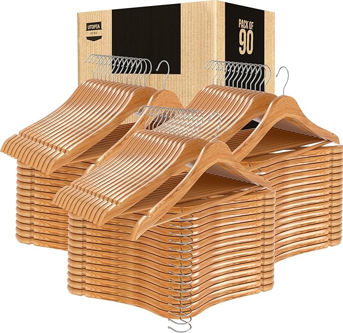 Utopia Home Premium Wooden Hangers 90 Pack - Durable & Slim Coat Hanger - Suit Hanger with 360-Degree Rotatable Hook - Wood Hangers with Shoulder Grooves (Natural Color)