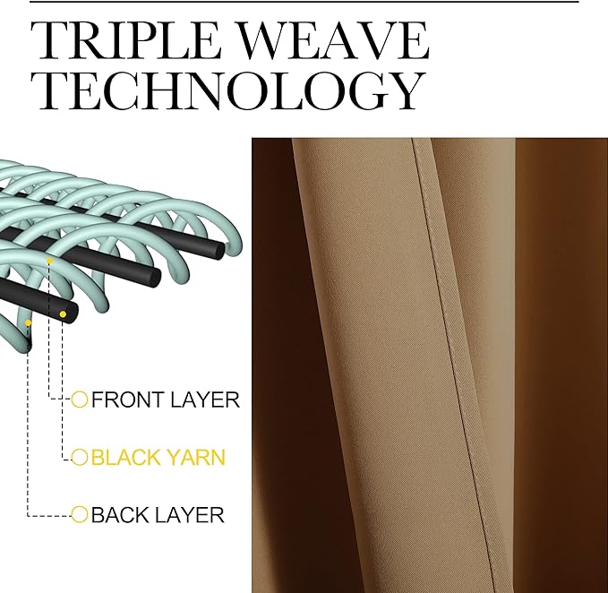 - SERVE WELL: Curtains impede 85%-99% light and UV rays(Dark color curtains work well). Noise-reducing, better TV viewing thanks to the innovative triple weave technology.