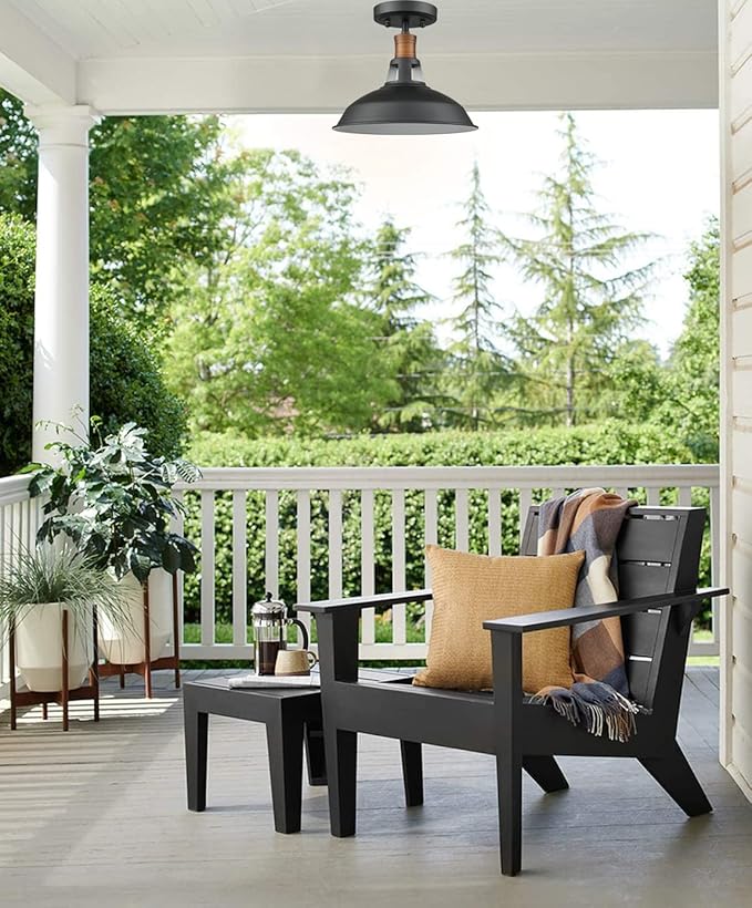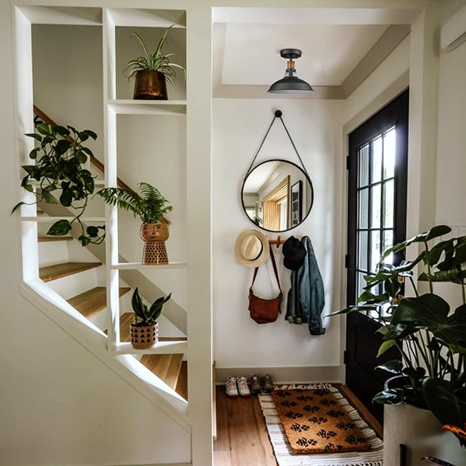 - Simple and Classic Design: the flush mount ceiling light features black finish and open metal barn shade, blends old and new design in a masterful way to showcase the modern farmhouse decor trend